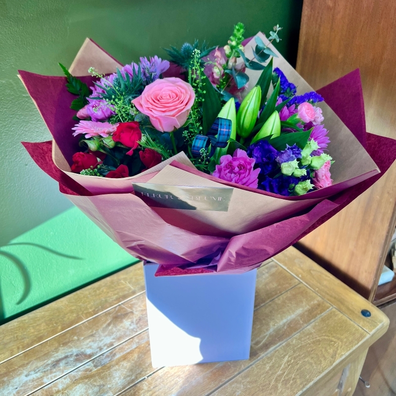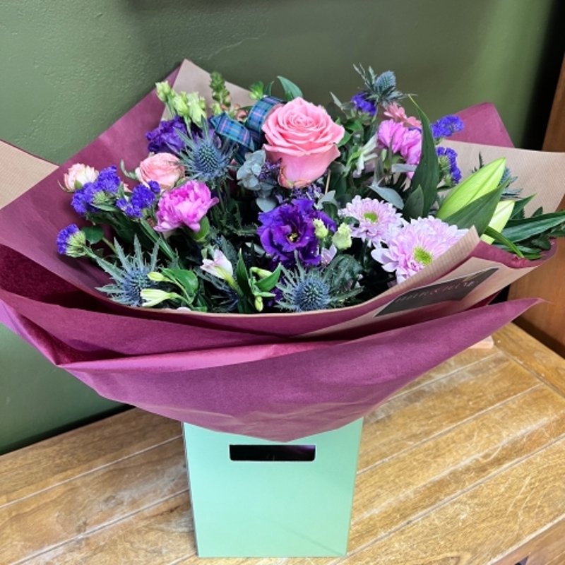 Bring a touch of Scotland into your home this Valentines Day and do the Highland Fling with this beautiful hand tied bouquet arranged by our in house florist. It is gift wrapped in our premium Hand Tied packaging with an aqua pack water supply to keep them fresh until you are ready to put them in a vase and also a card for you to personalise with your own message.